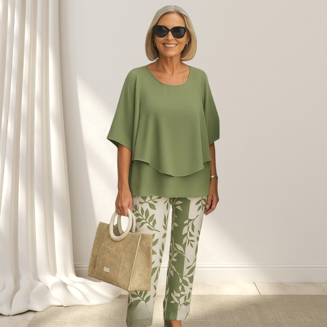 Evania™ - Elegant & Luftigt Set med Blus och Byxor